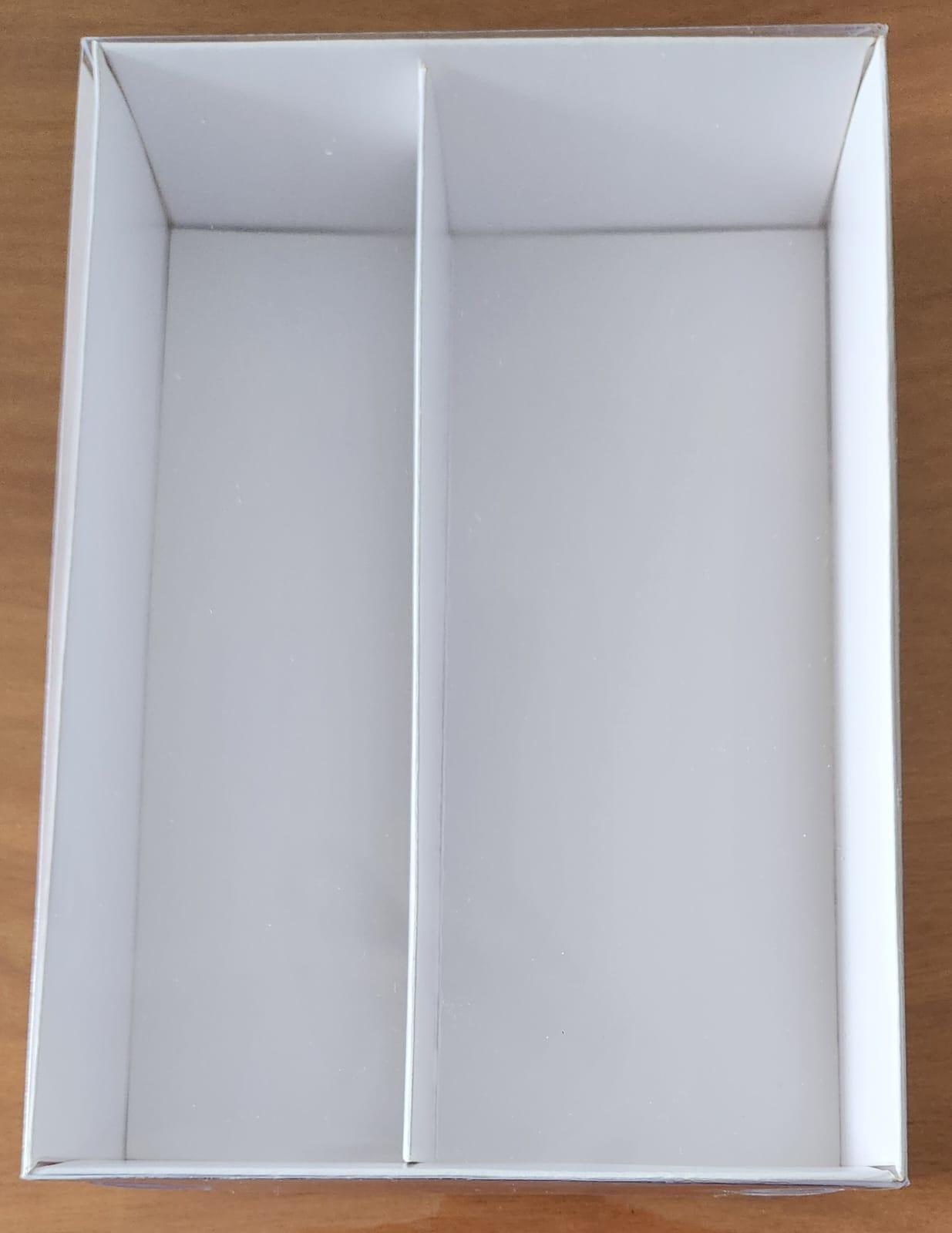 Caixa dos Ovos de Colher, com Divisória ou Berço para Ovos de Colher , Fundo Branco e Tampa de Acetato Simples, 21,5 x 15 x 5,5 = 6,20 a unidade