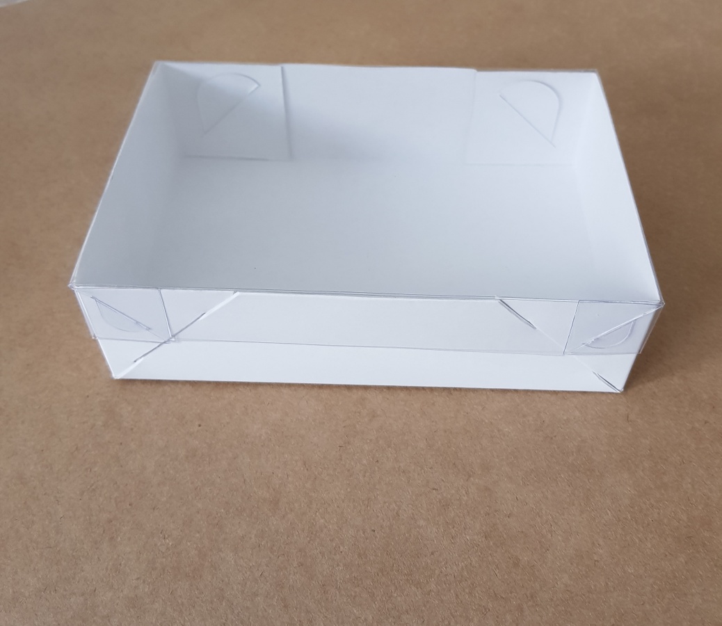 Caixa Lisa 17, fundo branco e tampa de acetato 18 x 12 x 5 = 3,73