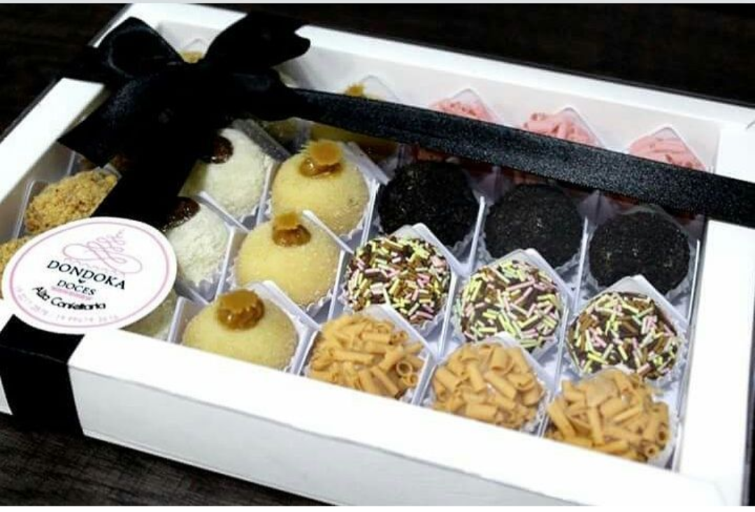 Caixa para 24 Doces, fundo branco 21 x 15 x 3 de altura, com tampa de acetato, com bordas nas laterais