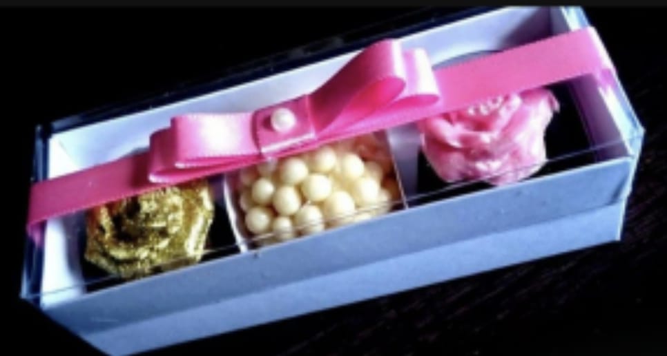 Caixa para 3 Doces, fundo papel, 12 x 4,5 x 3,5 de altura com tampa de acetato.