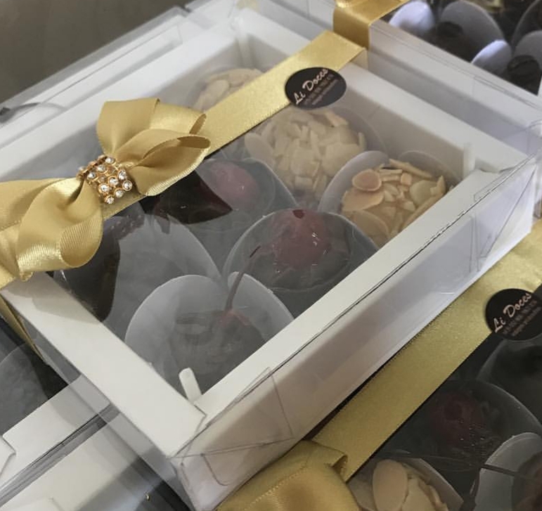 Caixa para 9 Doces, fundo branco 11 x 11 x 3 de altura, com tampa de acetato, com bordas nas laterais.