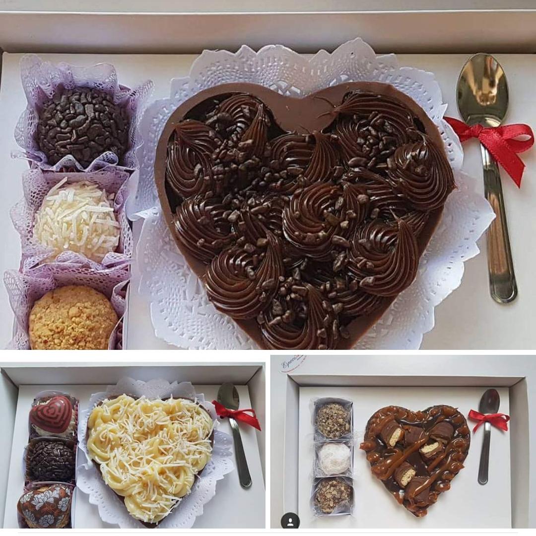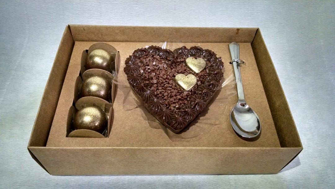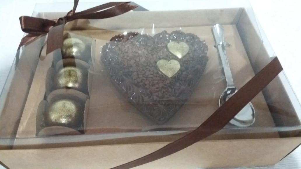 Caixa para Meio Coração de Colher 200 grs + 3 Docinhos (Forminhas vendidas separadas)