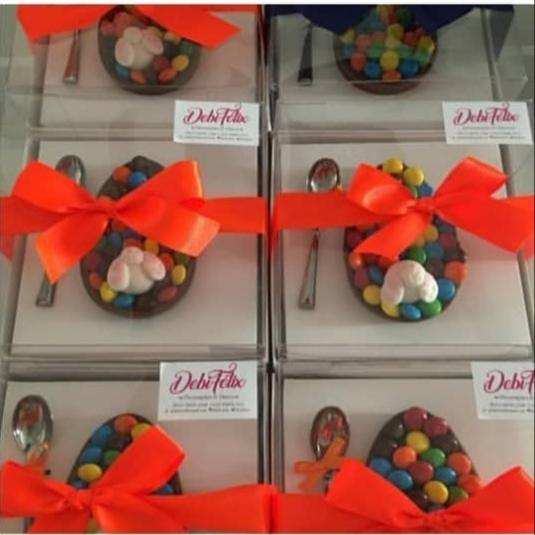 Caixa para 1 Meio Ovo de Colher de 150 grs, Fundo Branco, 15,5 x 15,5 x 3,5, Berço Branco e tampa acetato 7,5 de altura.