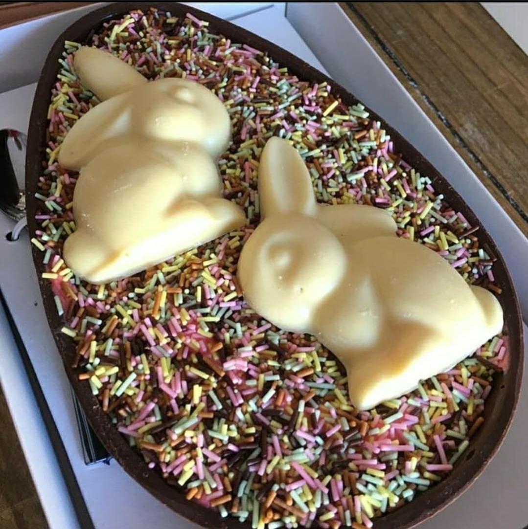 Caixa para Meio Ovo de Colher de 500 grs, Fundo Branco 21,5 x 15 x 5,5, Berço Branco, e tampa acetato 6,5 de altura.