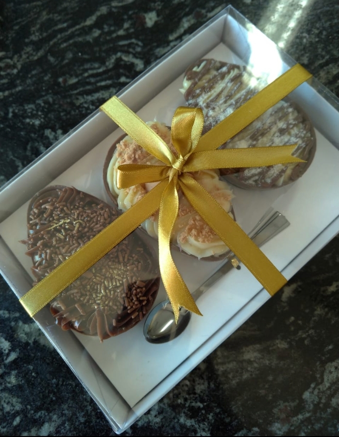 Caixa para Meio Ovo de Colher, Trio de 100 grs cada